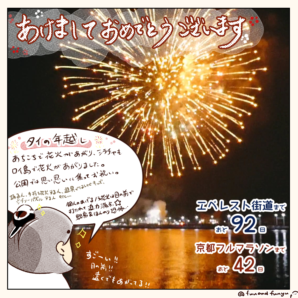 2026年あけましておめでとうございます ふふびより 2026.01.082026.01.10 こんにちは、ふにゅです。みなさま、あけましておめでとうございます。 現在はタイに滞在中です。順次公開予定のためお楽しみに! 今後の旅スケジュール1~2月:インド横断2月15日:京都フルマラソンチャレンジ3月~:ネパール入り→エベレスト街道へ Instagramでカウントダウン!【2026/1/4】